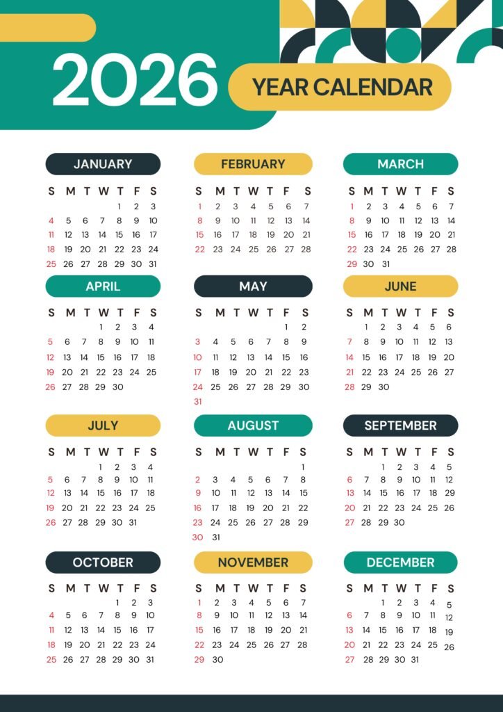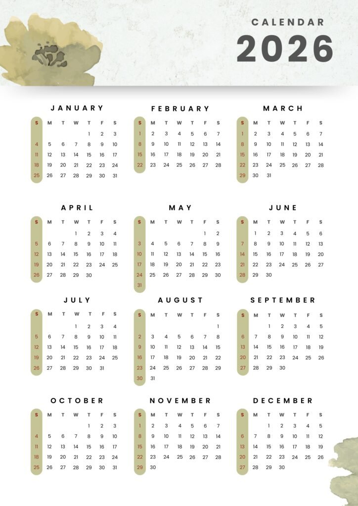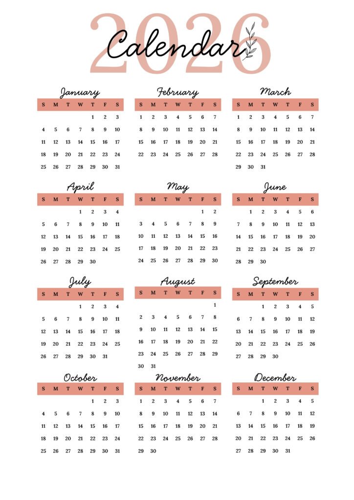 2026 Yearly Calendar: Free Printable Templates