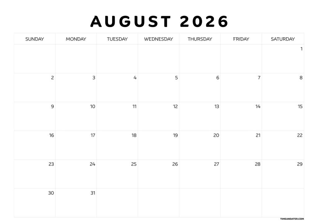August 2026 Calendar: Printable Calendar Template for 2026 Calendars