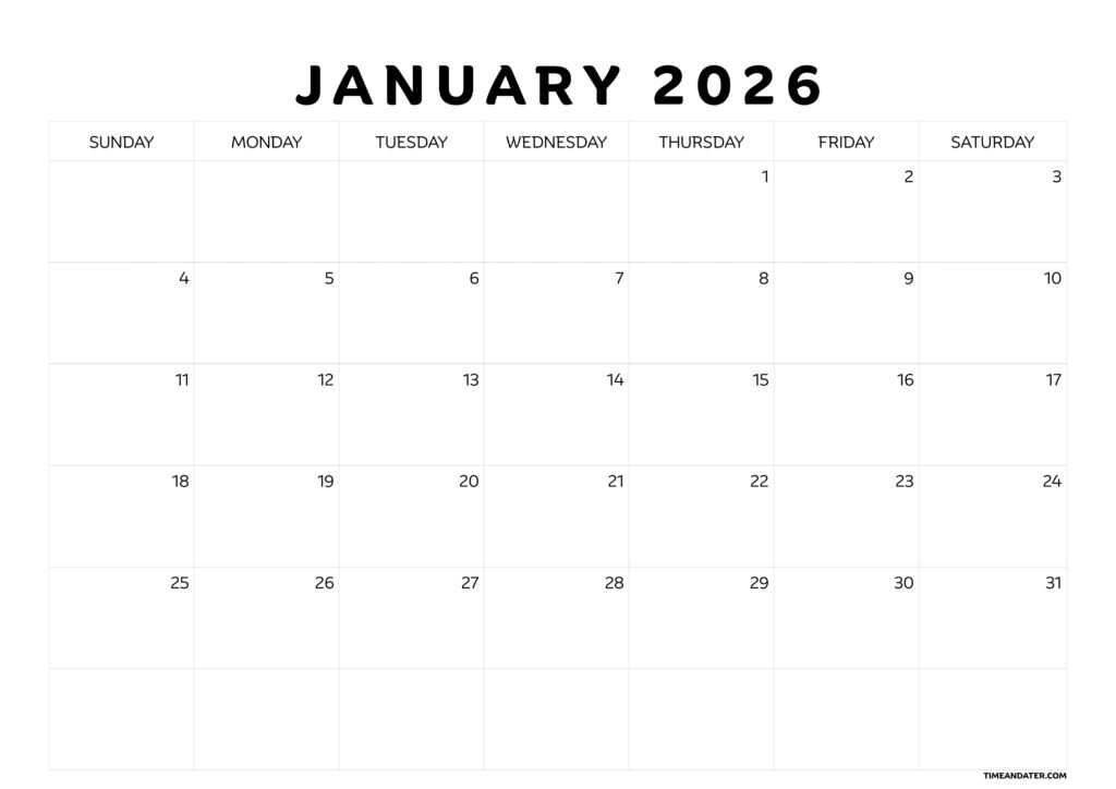 January 2026 Calendar: Printable Calendar Template for 2026 Calendars